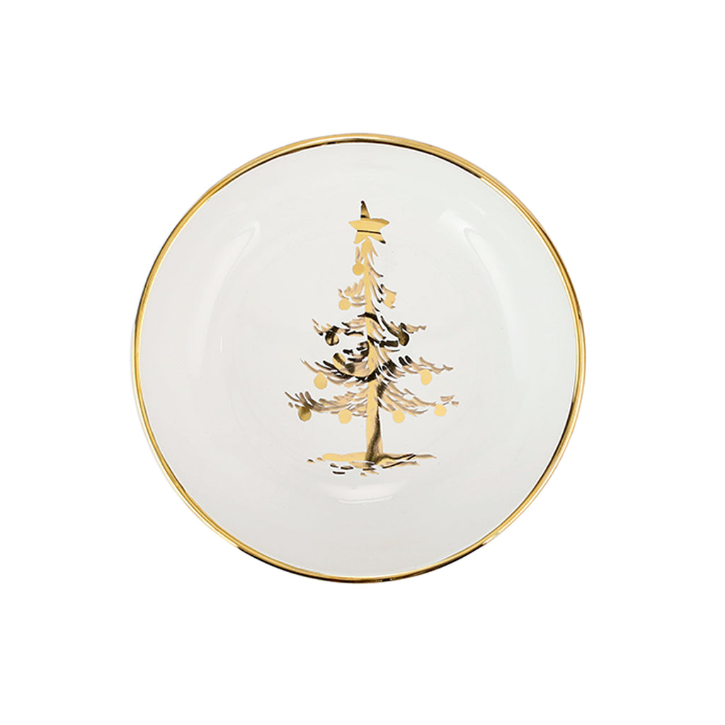 The Medici Natale Pasta Bowl brings an elegant touch to any dining experience with its handpainted design. Featuring glimmering trees in a warm gold, this bowl effortlessly combines beauty and functionality, making it perfect for festive occasions or everyday use.