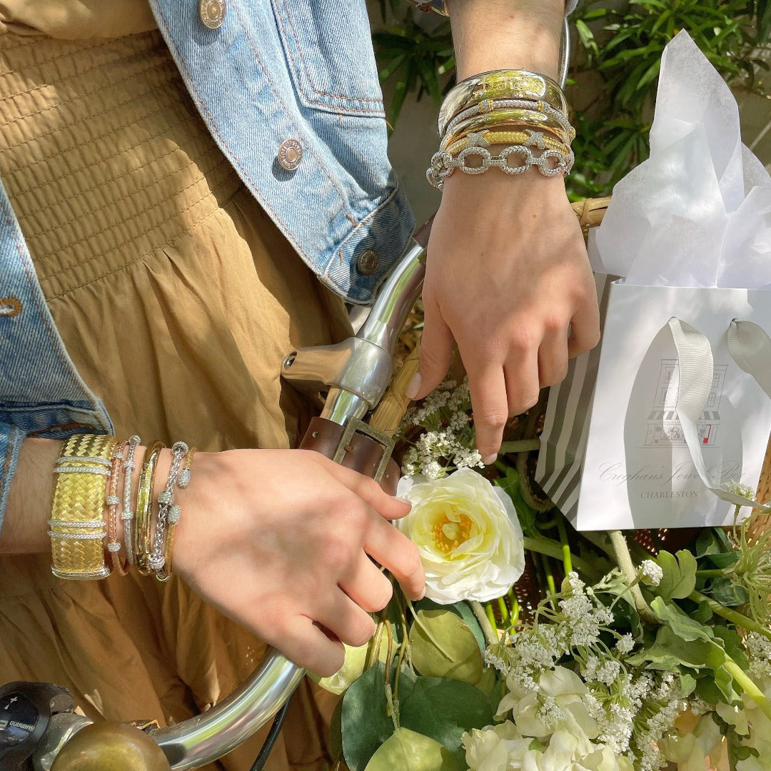 Discover the elegance of the Charles Garnier CZ Rhodium-Plated Silver 3mm Mesh Cuff Bangle. This exquisite piece of jewelry combines the beauty of sterling silver with a rhodium finish for a timeless look. Adorned with cubic zirconia stone accents, this bangle adds a touch of sparkle to any outfit.